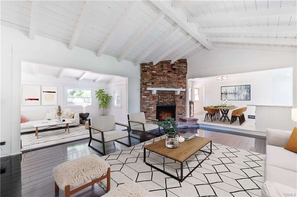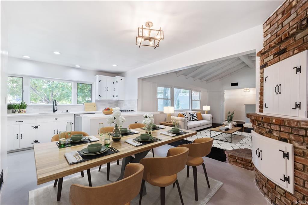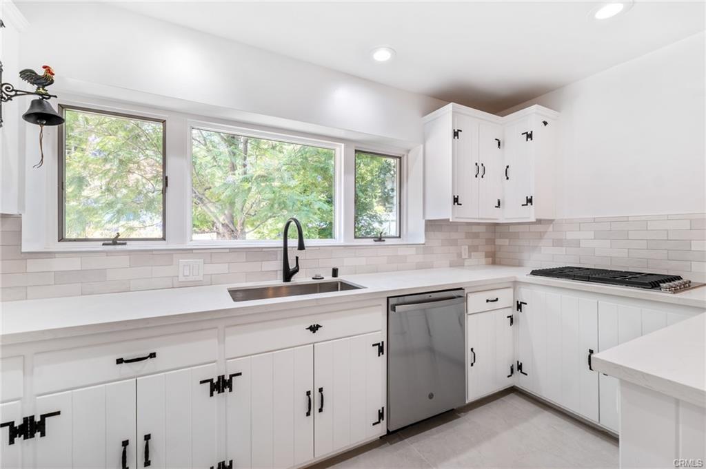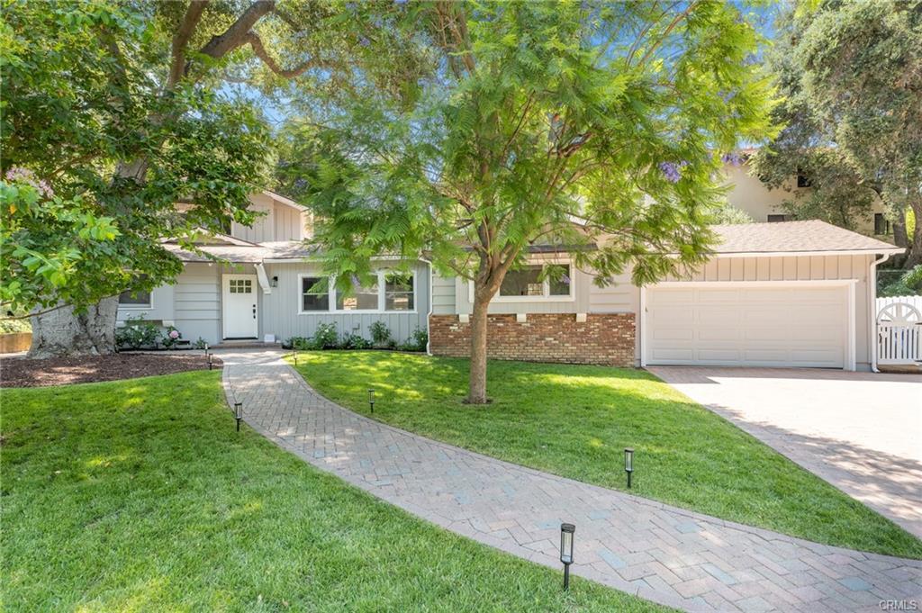 ESCROW CLOSED AT SALES PRICE OF $1,200,000! Welcome home to your dream house nestled in the serene hills of Woodland Hills. If you’re seeking a peaceful escape from the hustle and bustle, yet still want to be close to your favorite restaurants, shops, and the beach, this is the perfect place for you! Tastefully remodeled while retaining it’s original charm, this house is an absolute gem. As you step through the front door, you’ll be captivated by the stunning vaulted ceilings, refinished wood floors which are complemented by brand-new custom porcelain flooring and custom light fixtures throughout. The open-concept living room, family room, and dining area feature a charming brick wood-burning fireplace, perfect for cozy evenings. The beautifully remodeled kitchen offers a scenic view of the surrounding trees and boasts brand-new quartz countertops and stainless steel appliances, including a double oven and separate stove. The eating area is ideal for family gatherings, with a separate formal dining room available for more elegant occasions. This home features three generously sized bedrooms, with the option of a primary bedroom either upstairs or downstairs. The upstairs suite includes an en-suite remodeled bathroom with a custom-tiled shower, new vanity, and custom lighting. The two downstairs bedrooms share a full bath with a double sink vanity and ample closet space. Additionally, there’s a convenient powder room located off the kitchen as well as an attached two-car garage. The professionally landscaped front and backyard are breathtaking, with new plants and a lush, grassy front yard. Enjoy al fresco dining in the serene backyard while enjoying the serenity that the neighborhood brings. Tucked away in the hills, this home offers ultimate privacy while still providing easy access to freeways, shopping, dining, schools, beaches, and hiking trails. Don’t miss your chance to own this secluded retreat, where tranquility meets timeless style!